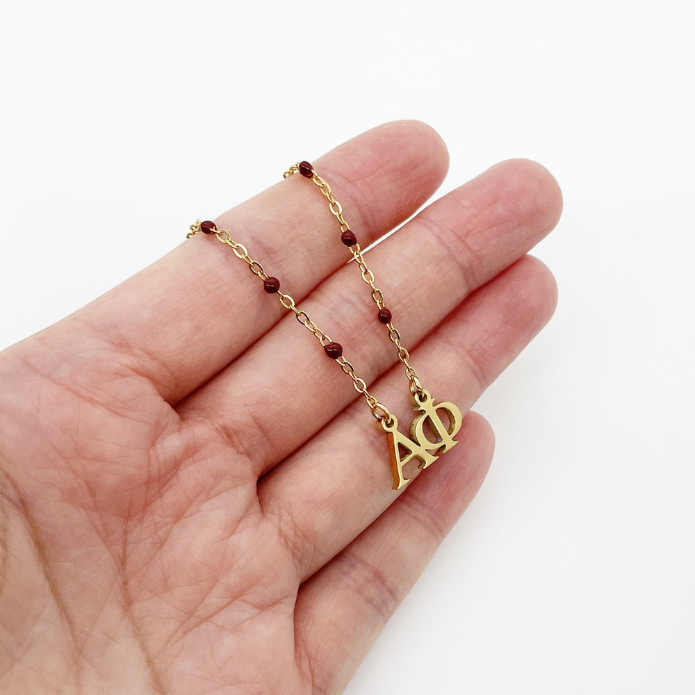 Show your Greek pride by wearing this modern Alpha Phi sorority lavalier floating necklace. Make this stylish lavalier necklace as part of your collection. This makes a great sorority gift for a newly initiated member and makes a perfect favor for any sorority event.